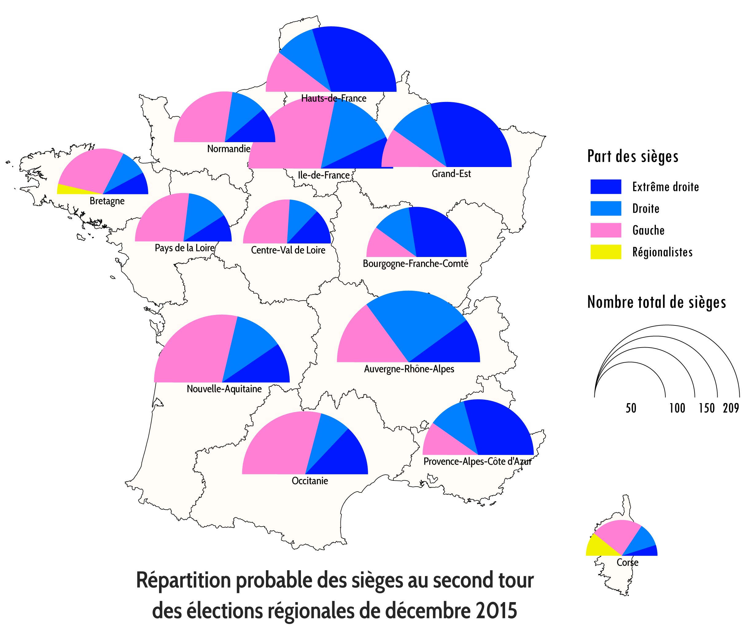 Comme aucune liste n’a obtenu plus de la moitié des voix, il y a eu un second tour dans toutes les régions. J’ai donc fait deux hypothèses: